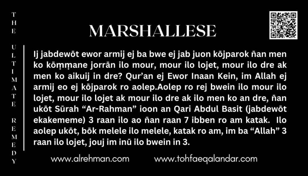Elukkuun am mour ej jorrān, mour ilo lojet ej ālikļo̧k, ak mour ilo men ko an dre ej kajjen̄ – kwōj jab juon eṃṃan mour wōt.