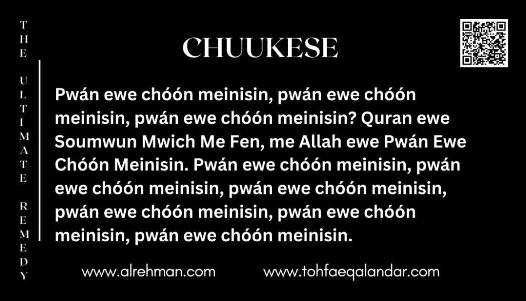 Ewe pwán ewe chóón meinisin, pwán ewe chóón meinisin, pwán ewe chóón meinisin. Pwán ewe chóón meinisin, pwán ewe chóón meinisin, pwán ewe chóón meinisin.