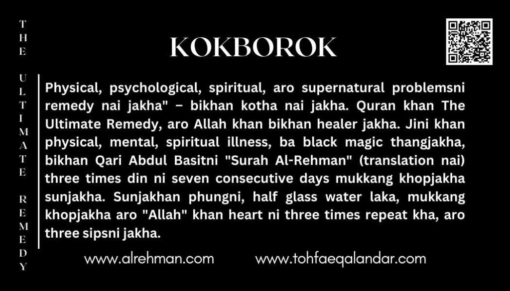 The Ultimate Remedei khan healing method nai jakhala – bikhungni hope, comfort, aro spiritual strengthni message. Syed Safdar Hussain Bukhari (Kakian Wali Sarkar) tongthoini, bibaidi khan physical illness, emotional pain, spiritual disconnection, ba metaphysical disturbance thangni manikni help jakhala. Sound therapy aro intentionni jorai jakhala, bibaidi khan dunia biphangni million manik healing phaljakla – completely free of charge.