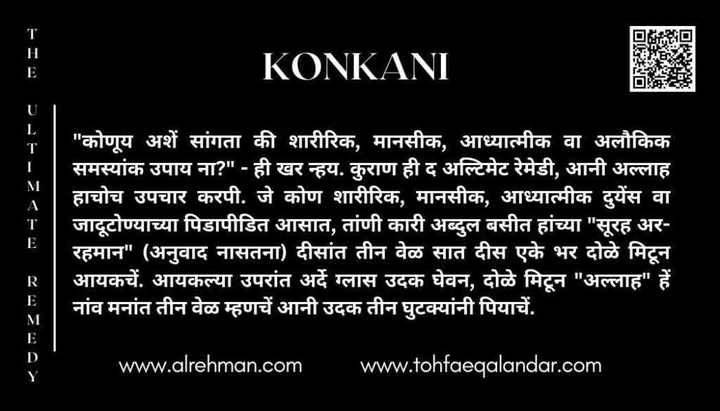 द अल्टिमेट रेमेडी ही फकत एक इलाज पद्दत न्हय, पूण संवसारांतल्या सगळ्या मनशांखातीर आशा, सांत्वना आनी आध्यात्मीक शक्तीचो संदेश. सय्यद सफदर हुसेन बुखारी (काकियान वाली सरकार) हाणें मुळात सुरू केल्ली ही पवित्र पद्दत शारीरिक दुयेंस, भावनिक दुख्ख, आध्यात्मीक विलगाव वा अलौकिक अशांततायेच्या पिडापीडित लोकांक मजत करपाखातीर तयार केल्या. ध्वनी उपचार आनी हेताच्या संयोगान ह्या पद्दतीन जगभर लाखांनी लोकांक बरो करपाक मजत केल्या – पुरायपणान विनामूल्य.