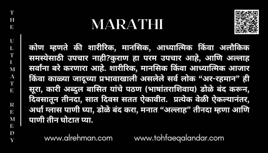 Who says there is no remedy for any kind of physical, psychological, spiritual, and/or supernatural problems. Quran is The Ultimate Remedy, and Allah is the one who Cures all. All those suffering from any Physical Mental, or spiritual illness or black magic, should listen to surat “Al-Rehman” a recitation by Qari Abdul Basit (Without translation) 3 times a day for 7 consecutive days with closed eyes. Every time after listening take half a glass of water, close your eyes and say ”Allah” thrice in your heart, and drink in 3 sips.