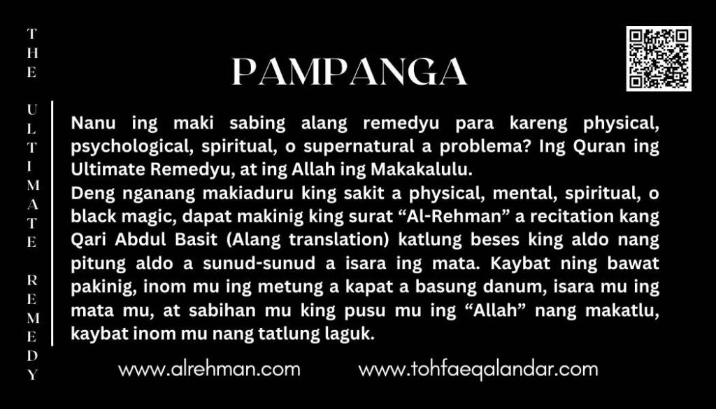 Ing Ultimate Remedyu ali mu healing method—message ya ini pang pag-asa, aliwu, at spiritual a bie para kareng nganang tau king yatu. Menibat kang Syed Safdar Hussain Bukhari, a ausan dang Kakian Wali Sarkar, ing banal a methodung iti ay gagawan para tulungan deng makiaduru king sakit a physical, emotional, spiritual, o metapisikal. Gamit ing kombinasyun ning tunug at intensyun, mebring healing ya kareng milyun-milyun a tau—nganga, alang bayad.