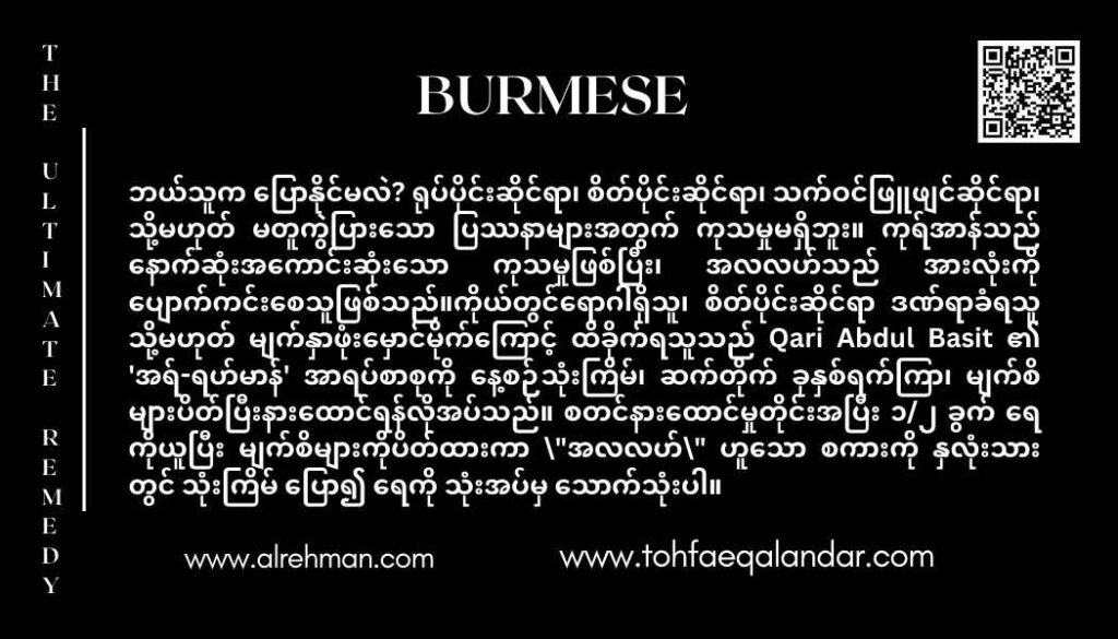 Who says there is no remedy for any kind of physical, psychological, spiritual, and/or supernatural problems. Quran is The Ultimate Remedy, and Allah is the one who Cures all. All those suffering from any Physical Mental, or spiritual illness or black magic, should listen to surat “Al-Rehman” a recitation by Qari Abdul Basit (Without translation) 3 times a day for 7 consecutive days with closed eyes. Every time after listening take half a glass of water, close your eyes and say ”Allah” thrice in your heart, and drink in 3 sips.