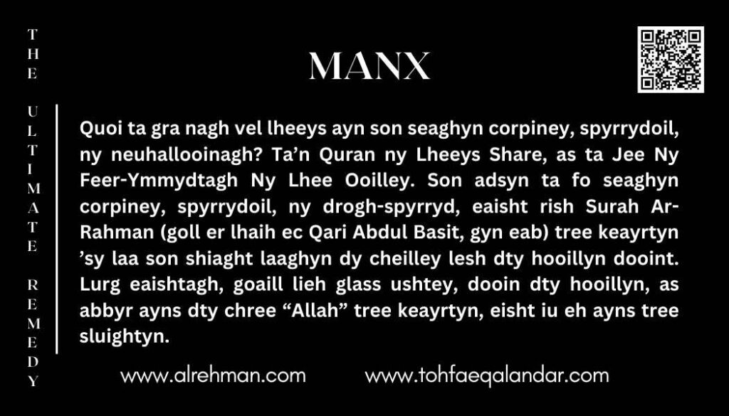 - Lurg dy chooilley haghter, goaill lieh glass ushtey, dooin dty hooillyn reesht, as abbyr ayns dty chree “Allah,” “Jee,” ny ennym casherick erbee t’ou credjal ayn—tree keayrtyn. Eisht iu eh ayns tree sluightyn.