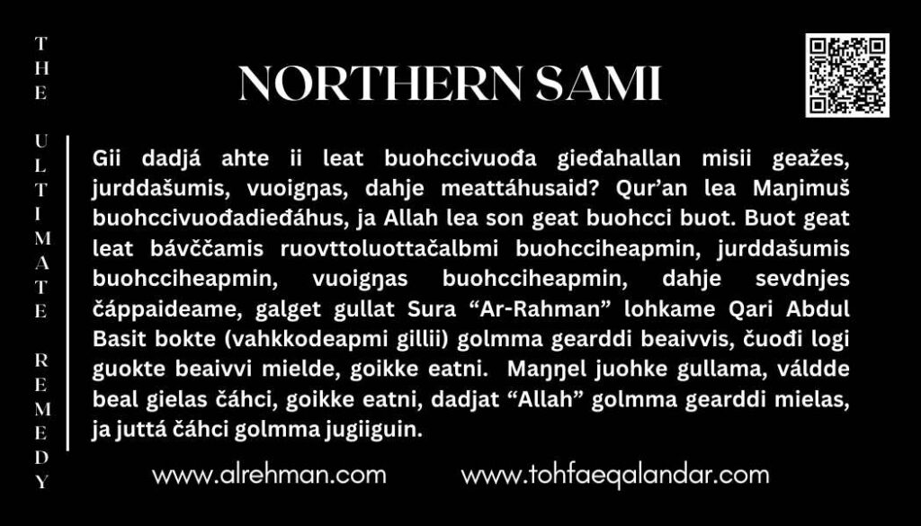 - Vállje ráfi sadji, goikke eatni, ja gullat ollu geahččaleapmin — oktavuođas Alla dahje universála ráhkisvuođa mielde.