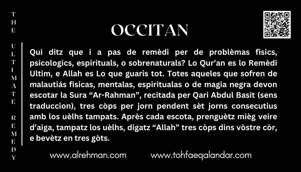 Lo Remèdi Ultim es pas sonque un metòde de guarison — es un messatge d’esper, de consolacion e de fòrça espirituala per cada èsser uman sus la Tèrra. Inicialament introduch per Syed Safdar Hussain Bukhari, conegut coma Kakian Wali Sarkar, aqueste metòde sagrat es estat creat per sosténer aqueles que sofren de malautiás fisicas, de dolor emocionala, de separacion espirituala, o de disturbis metafisics. A travèrs d’una combinason de terapia sonòra e d’intencion, ja a portat la santat a milions de personas dins lo monde — totalament gratuitament.