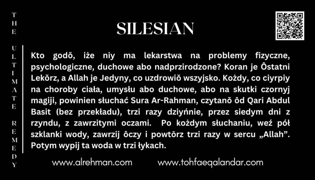- Słuchej trzi razy dziyńnie – rano, połednie i przed spanijym – przez siedym dni z rzyndu, ino roz we życiu. Potym podziel sie tōm wiadōmościōm, coby pōmōc inkszym.