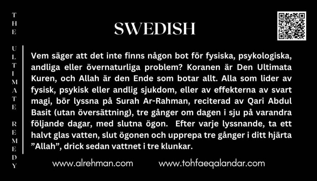 Vi erbjuder denna tjänst helt gratis – som en gåva av kärlek, barmhärtighet och plikt gentemot mänskligheten. Vi gör detta eftersom vi tror att läkedom aldrig ska bero på pengar.