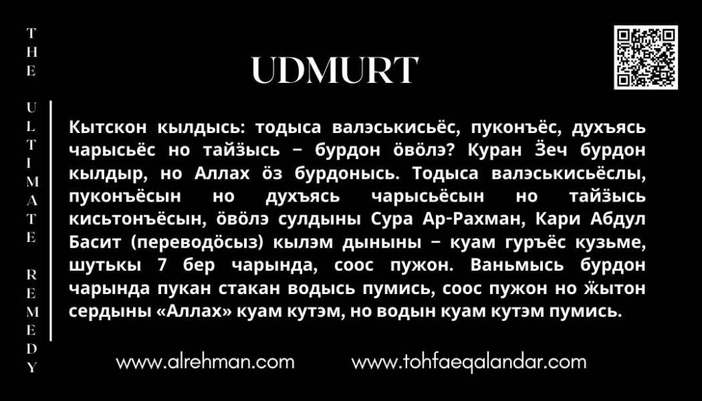 - Ваньмысь бурдон чарында, пукан стакан водысь пумись, соос пужон, но ӝытон сердыны «Аллах», «Дэу» но ӝугыт кылдыр но – куам кутэм. Соос водын куам кутэм пумись.