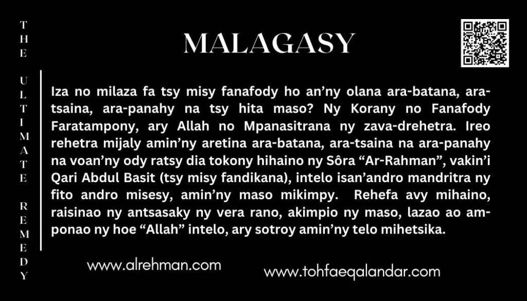 - Mihainoa intelo isan’andro – maraina, tolakandro ary alohan’ny hatory – mandritra ny fito andro misesy, indray mandeha ihany mandritra ny fiainanao. Aorian’izay dia zarao amin’ny hafa ity hafatra ity mba hanampy azy ireo.