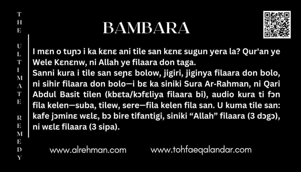 - Bɔ audio kun ka kɛnɛ, don kafe jɔminɛ ½ kɔkoyɲa wɛlɛ, bɔ bire tifantigi, ni kun ka siniki “Allah,” “Dɔ̀mɔ,” ni filaara sũnen i ka digiri—kan dɔgɔ filaara. Nyi wɛlɛ ye mɛnɛnna sipa dɔgɔ filaara.