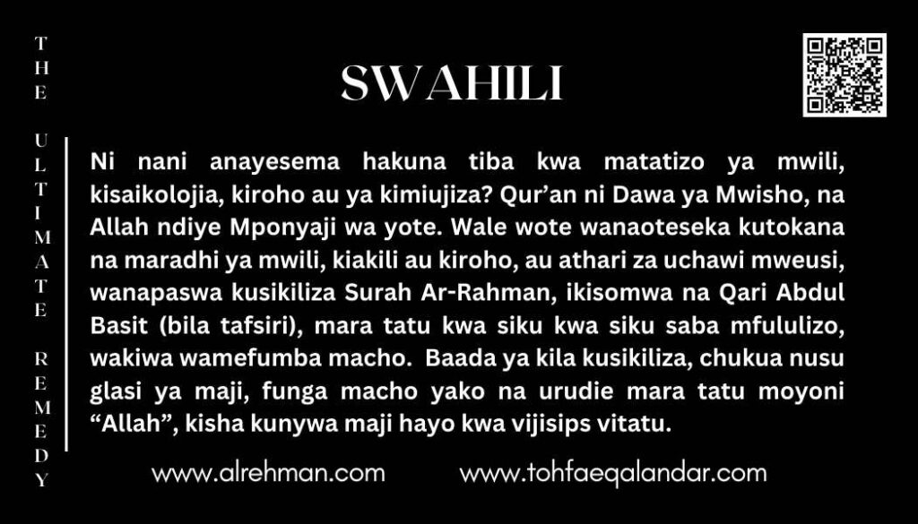 - Sikiliza mara tatu kwa siku – asubuhi, mchana na kabla ya kulala – kwa siku saba mfululizo, mara moja tu katika maisha yako. Baadaye, sambaza ujumbe huu ili kuwasaidia wengine.