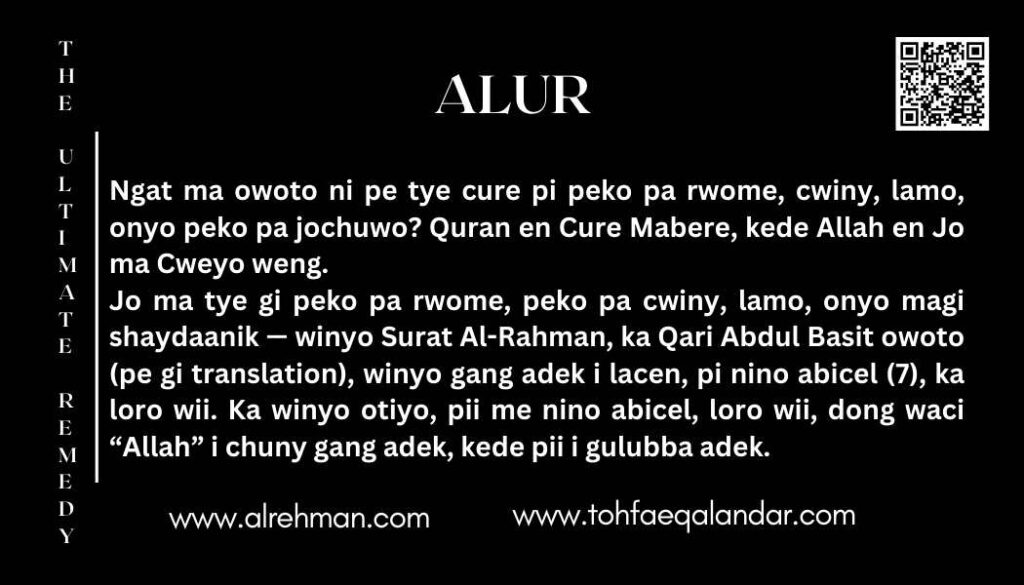 - Yer kabedo ma pe tye wi bal, loro wii, dong winyo ki chuny maber — ka itiyo kwede ni iyiko chuny ni Woth Obedo Lubanga onyo Her Ma Opong.