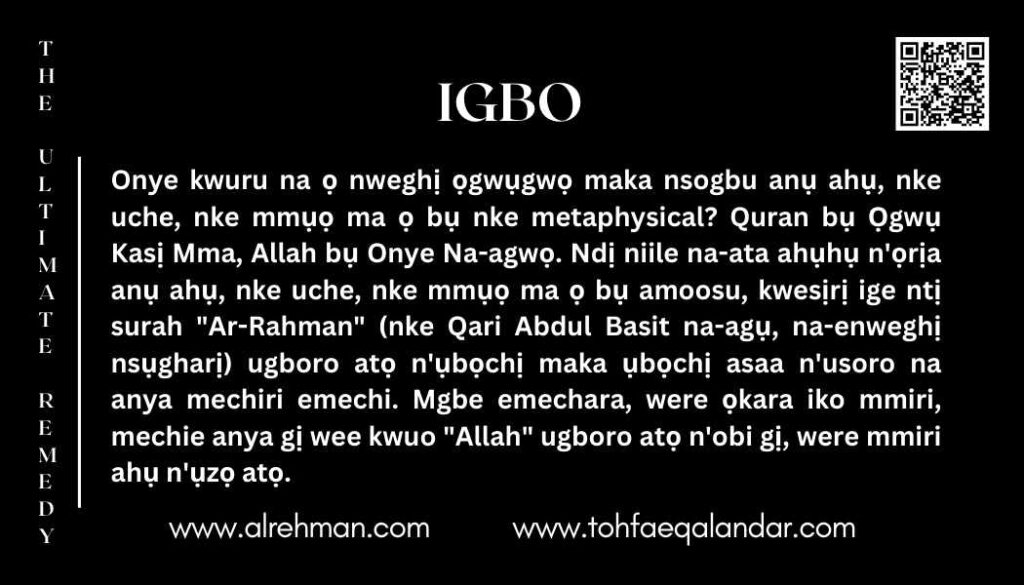 ✔ Ọ bụrụ na ahụ gị na-egbu mgbu, mkpụrụ obi gị ike gwụrụ ma ọ bụ mmụọ gị emerụ – ị naghị anọ naanị gị.