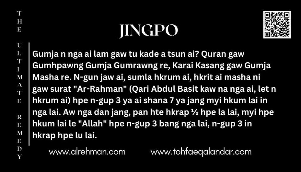 ✔ Na n-gun jaw ai, na chyeju dum ai, na sumla hkrum ai jang – na hkrai sha n re.